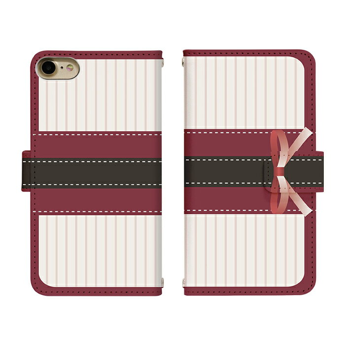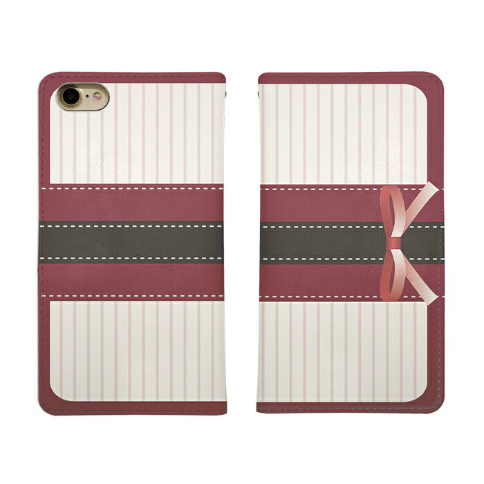 SCV35 Galaxy S8+ ギャラクシー エス エイト プラス au エーユー 手帳型 スマホ カバー レザー ケース 手帳タイプ フリップ ダイアリー 二つ折り 革 005409 リボン ストライプ